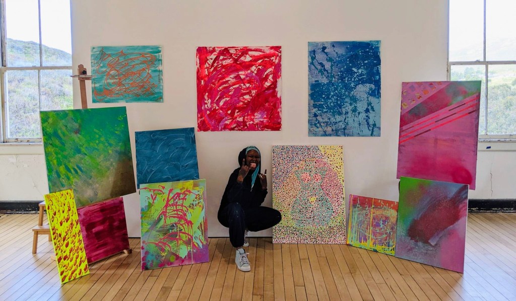 Nigerian dyke poet, visual artist, photographer, dancer, performer. “I work with spray paint, acrylics, textiles, paper, canvas. I paint what I like. What moves me.” Etaghene is a Svane Family Foundation Inaugural Artist in Headlands Center for the Arts’ Bay Area Fellowship.